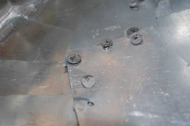 Ahora colóquelas en los agujeros con todo el metal en el orden correcto en la parte superior y con la Peña de bola martillo propagación y redondear el la parte superior lo suficientemente para evitar que se deslice fuera del agujero. Para obtener instrucciones más detalladas consulte este instructivo: