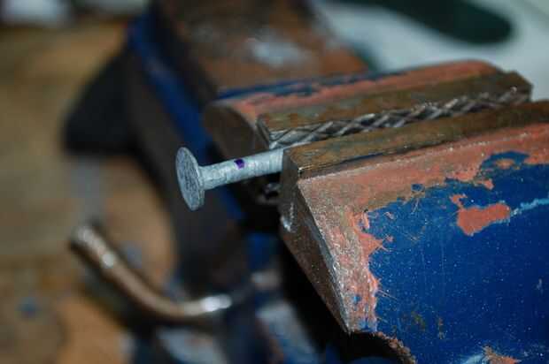 Una vez que ha marcado la longitud de varios remaches, corte el resto de la uña con el cortapernos, sierra para metales o Dremel.