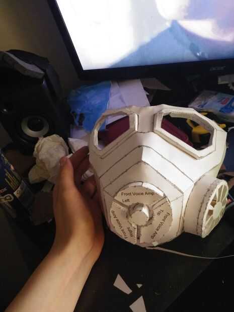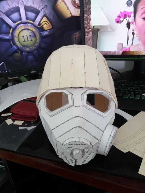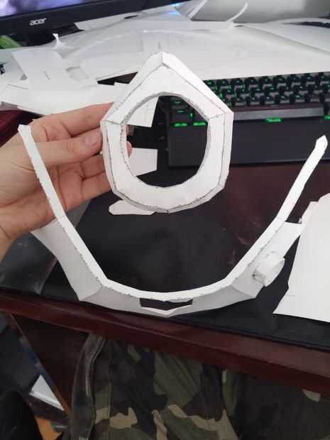 Ahora si han impreso todas las páginas. Mantenga el pepakura viewer abierto ayudará mucho cuando se trata de ver en qué parte pertenece. Empecé a hacer mi pedazo de página 21, sólo se cortan las piezas y busque los números de las otras piezas iguales números siempre van juntos. Utilice pegamento para unir las piezas. Continúe haciendo esto con todas las páginas. Recuerde comprobar que la parte de mando es su tamaño si no se ajusta a sacar alguna parte o hacer piezas de cartón de papel para caber entre las partes. Al hacer la pieza de lado con las linternas que tienes que modificar la pieza de papel para hacer luces encajan. Si quieres tener lo linterna extraíble ponen un imán en el lado del casco.