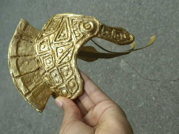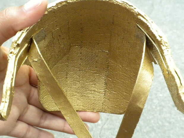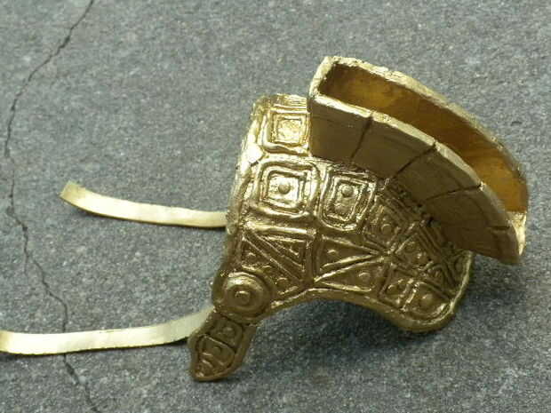 Utilizar arcilla, clips o pedazos pequeños de madera para formar el trabajo detallado en los lados del casco. He usado arcilla pero para mejores resultados es mejor usar clips de papel. Sólo desentrañar los clips de papel y use un alicate para formar la forma deseada. Puede utilizar super pegamento para pegamento las piezas en. Si se utiliza arcilla y después de que la pieza está en el casco empieza a agrietarse un poco, solo cubrimos en pegamento lavable de Elmer. Este llenarán en las grietas. Al hacer el diseño que utiliza formas al azar. Asegúrese de que cubren continuamente nuevas formas con el pegamento de Elmer para asegurarse de que todo se queda puesto.