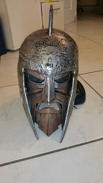 El casco es un concepto multi influenciado, se basa en un Dr Fate espuma despliegan pepakura modelo.