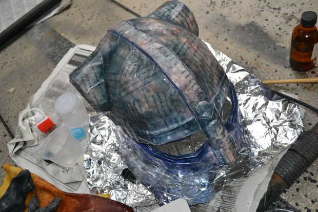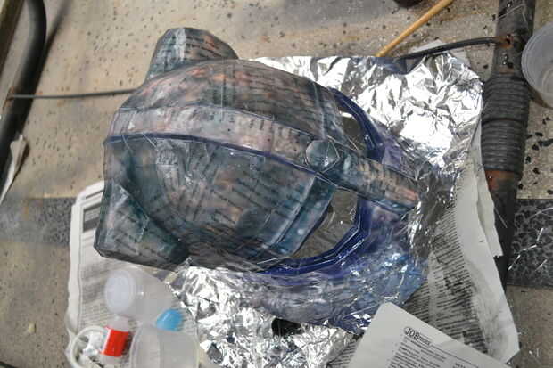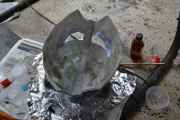 Mezclar unas onzas de resina en su vaso de plástico y algunas capas del cepillo en el exterior de su casco y cuernos. ahora esperar que se seque. Asegúrese de que ninguna parte quede sin resina.