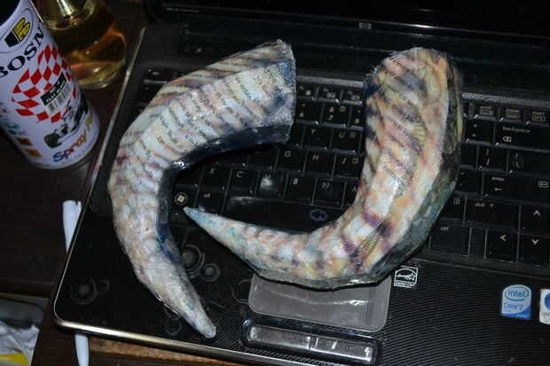 * Nota: puesto que no puedo poner la fibra de vidrio dentro de los cuernos, yo sólo cubrió lo con fibra de vidrio y resina fuera. Funciona tan bien. :)