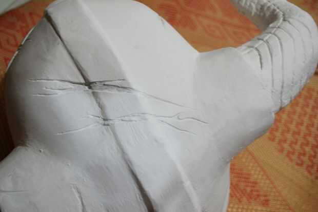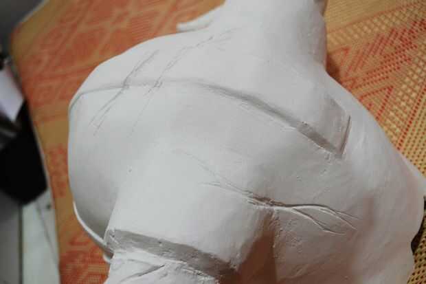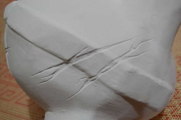 Ahora cuando esté completamente seca, esculpir algún crack y detalles, sería más fácil si cepillo o rociar agua sobre la superficie que vas a esculpir, el yeso será un poco más suave después.