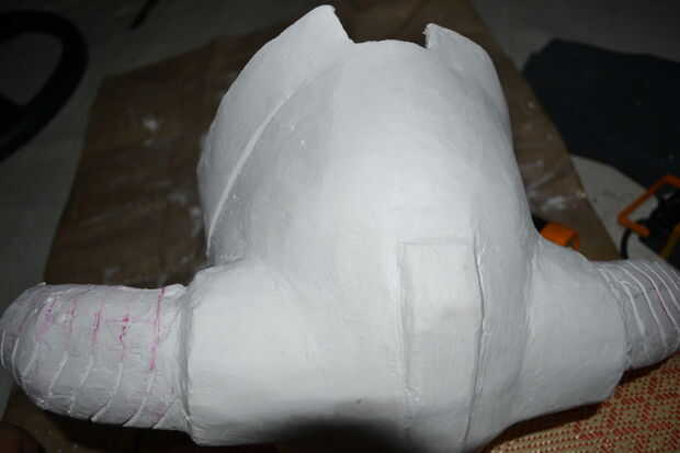 Ahora sus vasos de plástico otra vez y mezclar agua, PVA pegamento y yeso. la proporción debe ser 1:1:2 en el mismo orden. A continuación, mientras que el epoxi es un poco suave y cepillo en la mezcla de yeso en todo el asunto. va a ser un poco frustrante intentar hacer realmente gruesa. Me tomó numerosas capas antes del grosor que yo quería. no dejes que el cura de yeso completamente antes de que usted cepille la siguiente capa, porque sólo se agrietará mientras que se está esculpiendo.