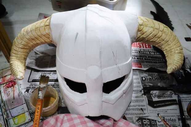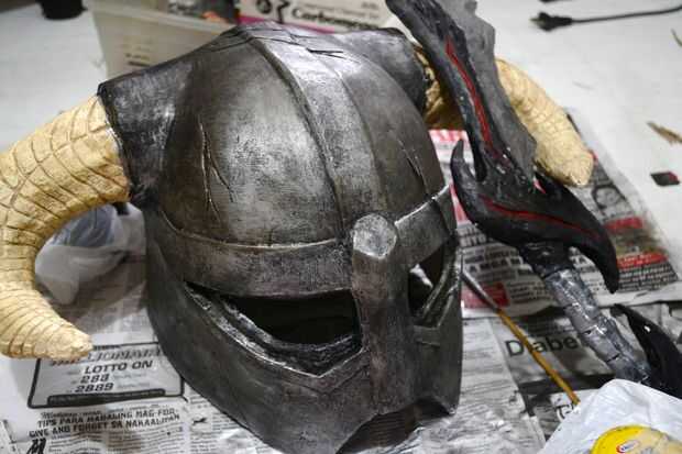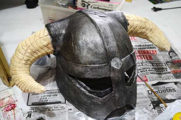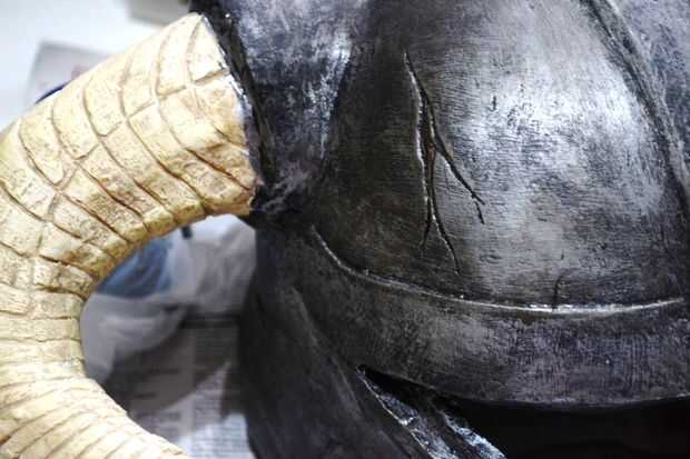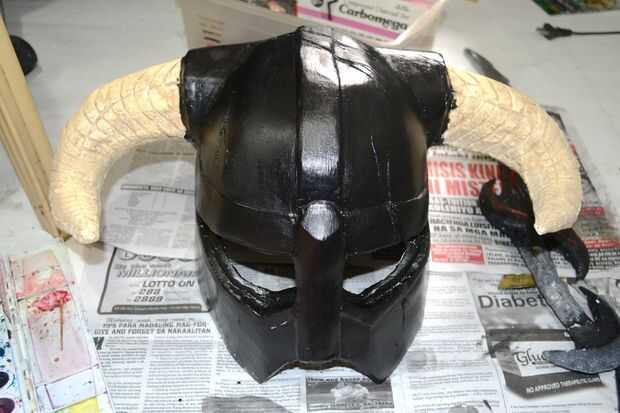 Ahora para la parte de "Hierro". Pintarlo todo negro (no, no incluyendo los cuernos). Cuando esté seco, vaya recoger su cepillo desgastado y cepillo en capas muy ligeras de pintura de plata. no ser demasiado cuidado, solo cepille al azar. Ahora esto le daría un buen "viejo acero" ver. No te preocupes sobre lo que es limpio, se supone que para ser viejo y sucio.