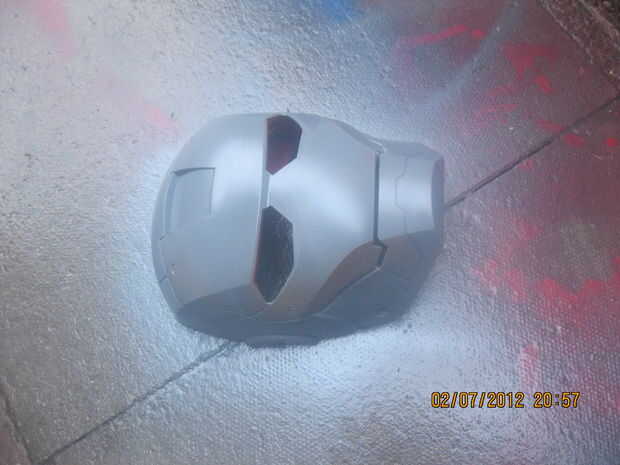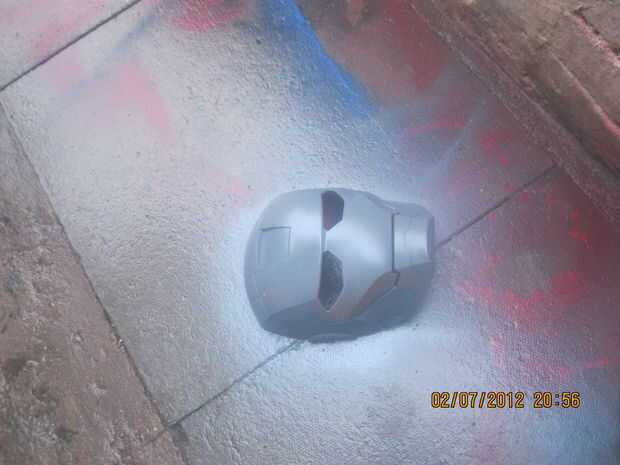 después de obtener el casco de ironman por mi traje y tener mi amigo hacen un molde de látex. decidí probar a hacer un casco de la máquina de guerra. me hizo la preparación y lo pintado luego se dio cuenta que no tenía ningún spray negro en mi arsena