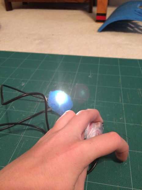 Comprar algunos LED y cable hasta una batería. Si desea, puede incluir un pequeño interruptor. Poner LEDs en los lados de cada ojo. Poner lentes reflectantes (gafas de sol) detrás de los LEDs para evitar cegar a ti mismo.