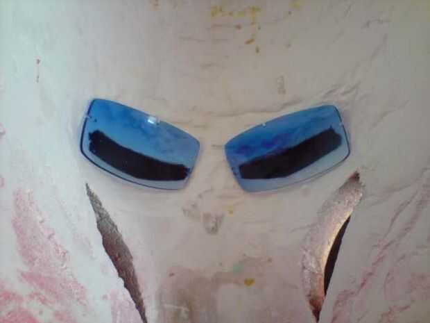 añadimos dos cada lado de LED del ojo, utilicé pegamento para poner éstos demasiado pero también podría utilizar una pistola de pegamento en estos tambien. a continuación añadir un interruptor en los cables y conectar la batería de 12v entonces usted debe tener ojos brillantes!