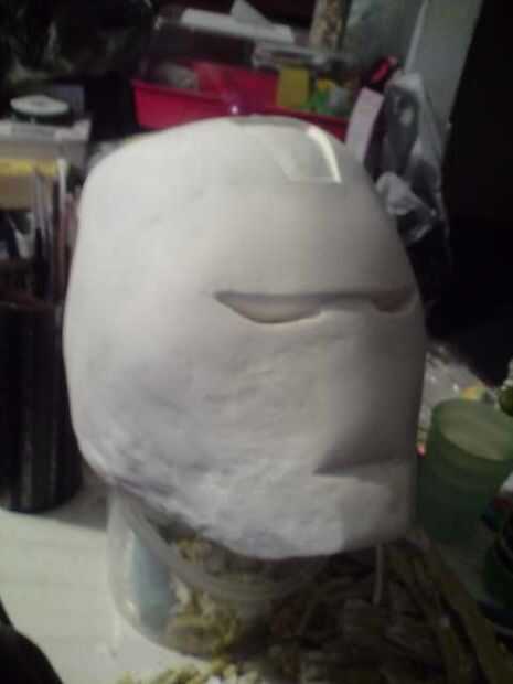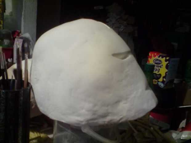Entonces tomé el casco de la cabeza del modelo y se dio cuenta que había hecho los ojos la forma incorrecta así que cortarlas un poco más y en forma otra vez. los ojos eran probablemente la peor parte para tratar de hacer bien y simétrica pero al final creo que se ven bien.