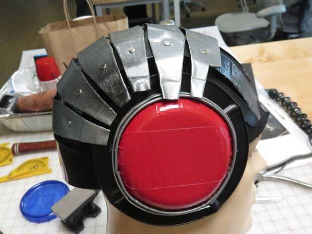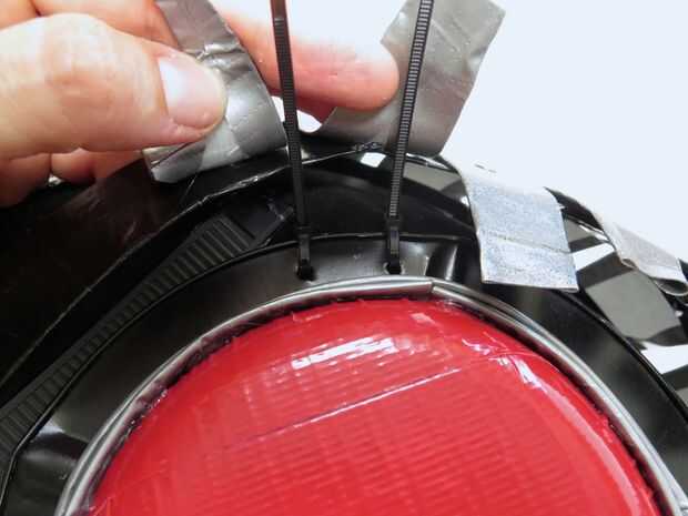 Luego até el auriculares con ataduras de cremallera todo el camino a través del sombrero y los dos agujeros que había perforado en el metal.