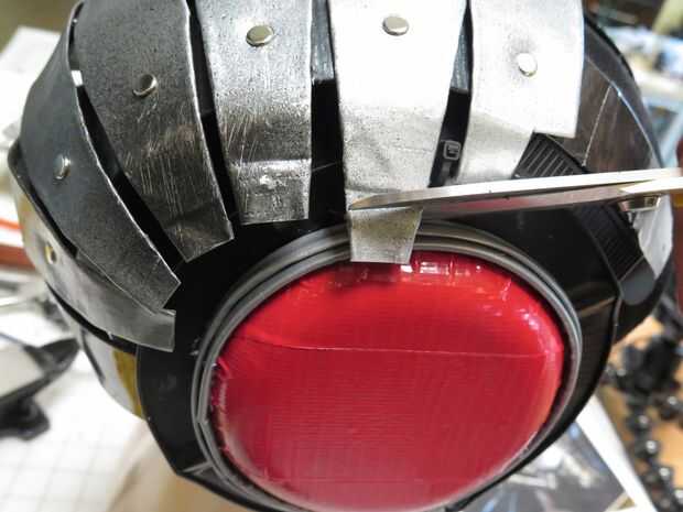 I recortar los extremos de los listones de la cinta de conductos alrededor de los pedazos de oreja, había doblado bajo y asegurar con pegamento caliente.