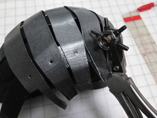 Los listones plata ya fueron Unidos con pegamento caliente, pero para que se vean aún más como real metal perforado agujeros en ellos y pegado en la mitad superior de remaches de plata.