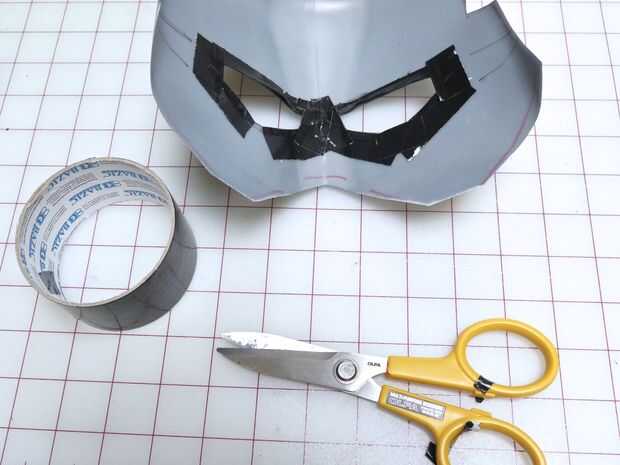 He creado dos tiras de cartulina para las rayas sobre los ojos y había cubierto con cinta aislante roja.
