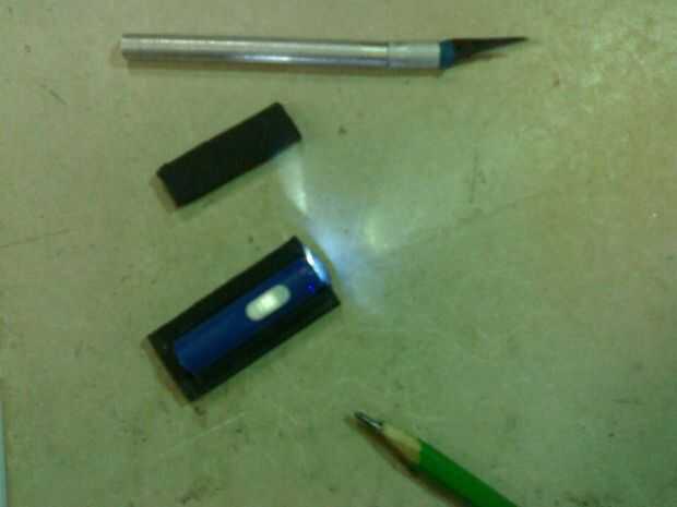 Utiliza una desechable encendedor con linterna led integrada en it, desmantelaron todo y utiliza la linterna led solamente.,