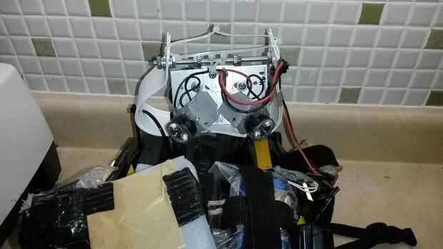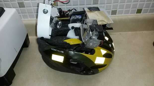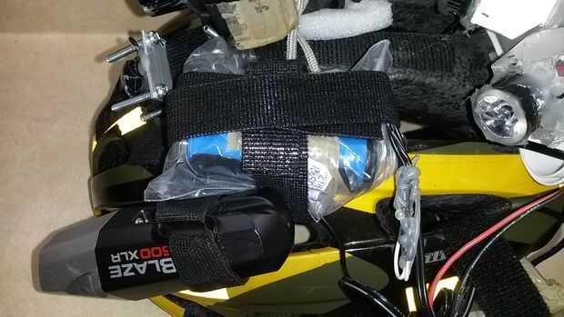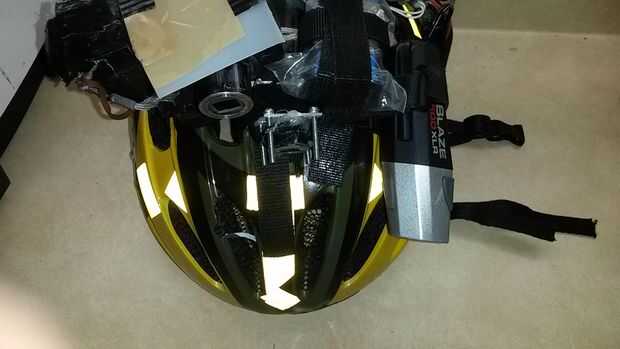 Use velcro para colocarle el soporte de la batería, LED, caja del circuito a su casco.