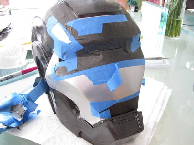Frote el casco hacia abajo con un paño de la tachuela y elegir su color de la placa frontal. Este color se aplicará directamente al casco sin las áreas enmascaradas fuera. Trate de mantener la pintura limitada a la región frontal. Seguir el proceso descrito anteriormente y cubrir el casco hasta que estés satisfecho con el color. Si la pintura es áspera, puede mojar la arena lo, pero hacer un pase incluso con el color después. Para esta etapa, nunca terminan con lija, siempre terminar con una capa de pintura de rociadura. Deje que la pintura seque por completo. Lamentablemente, una vez que empiece a aplicar el color, particularmente con la pintura de plata y brillante, las imperfecciones comenzará a hacerse más visible. ¿Se puede pulir la pintura y rellene las imperfecciones, o hacer como hice yo y escribir esto como daño de batalla... correcto?