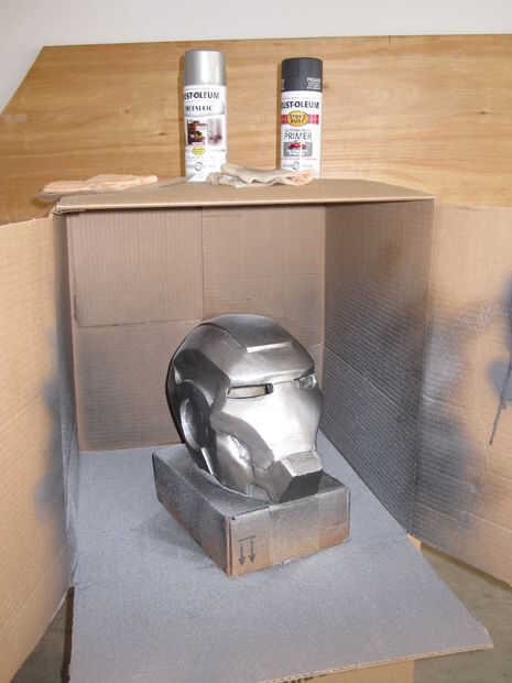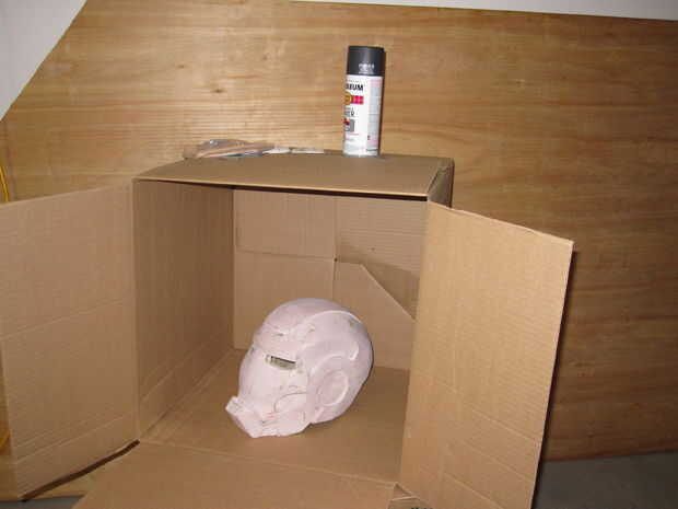 Yo recomendaría configurar una cabina de aerosol básico. Esto ayudará a proteger su pedazo de polvo al tiempo que protege el entorno de over-spray. Había inclinado de una caja de cartón por un lado y grabados al aire libre de las aletas.