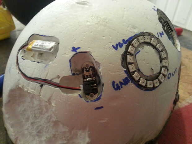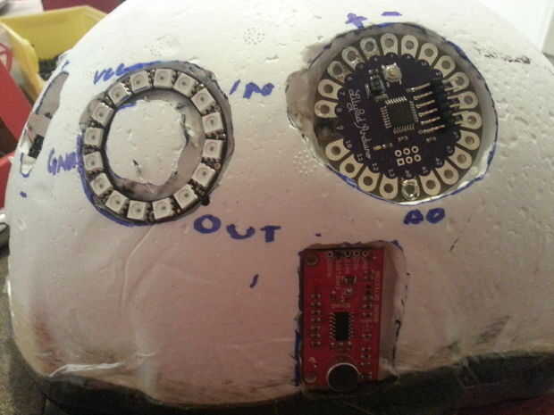 Este año para Halloween, hemos decidido hacer una mascara de robot para nuestro hijo mayor. Hay unos pocos componentes electrónicos diferentes que trabajan juntos para realizar la máscara final. Se utilizaron anillos neopixel y un arduino para el con