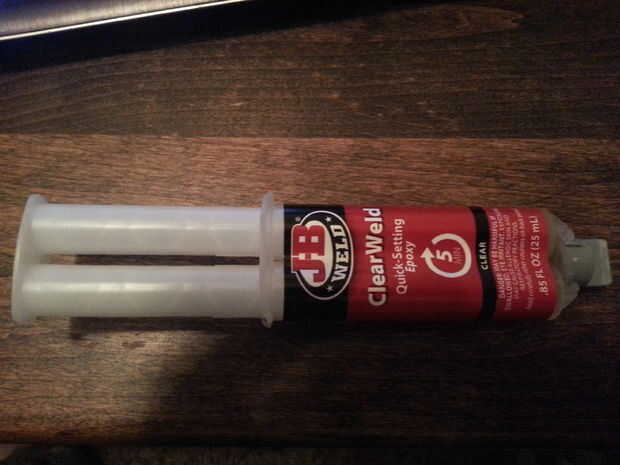 He utilizado JB soldaduras ClearWeld epoxi de rápido ajuste. Es el más claro de epoxy que he encontrado todavía.