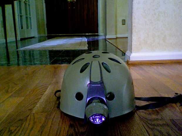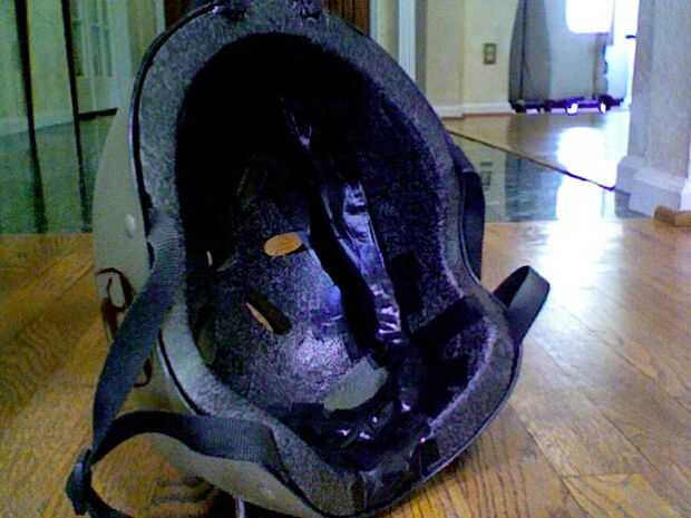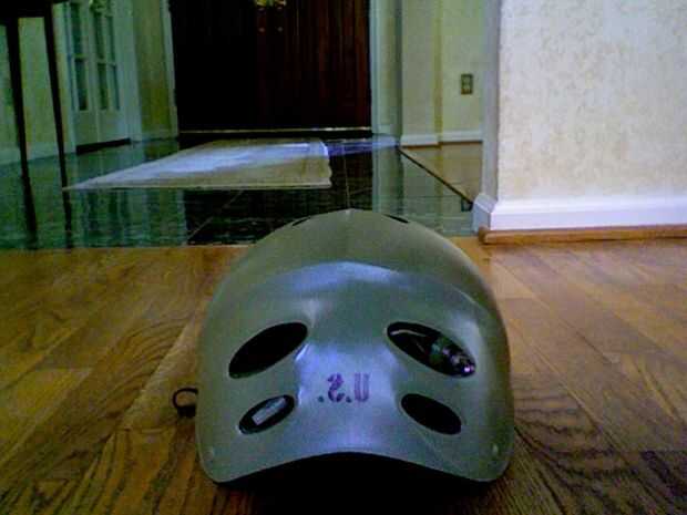 Se trata de un casco de fuerzas especiales del Faux que hice de un viejo casco de la bici, una linterna vieja, algunos aerosol-pintura, algunos impresos de las plantillas (algunos de mi propio diseño) y algunos preexistentes y pegamento. Primero que sacó mi viejo casco de la bici de cuando yo era un niño, entonces cogí mi linterna y determinó cómo se fije. Luego procedí a desmontar la linterna en sus componentes, entonces después de que tomé los cables añadidos apartes para conectar la bombilla y la batería y añadir mi propio interruptor que consiguió de Home Depot y poner la batería en un espacio corto de la guarnición del casco de espuma de poliestireno. Luego até la luz en el frente con algunos fragmentos al azar de forma plástica una vieja Webcam externa. Después de que he pintado todo e imprimir una bandera estadounidense y Letras de Estados Unidos en un tipo de letra llamado tráfico de Boston. Entonces en lugar de un parche de unidad imprimí el diseño para mi familia capa de brazos. el color del casco principal es verde OD y las partes estarcidas en son de un marrón oscuro genérico.