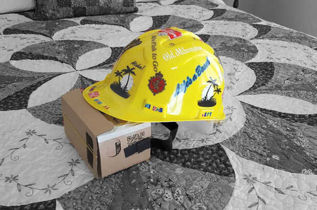 El casco quedó de un viejo disfraz de Halloween... y, por supuesto, el visor de Google cartón.