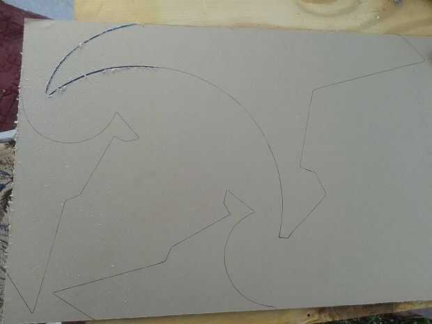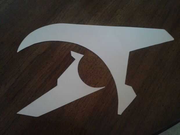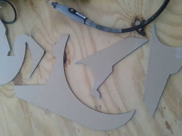 Primero, empecé por dibujar algunas formas para ir encima de mi casco, va un poco para un look retro. Después de decidir sobre las formas, dibujaba y cortar las formas de cartón delgado. Compró una hoja de acrílico o plexiglás azul clara. Rastrear las formas en el plexiglás y utilizado una herramienta dremel con broca 199 cortarlo.