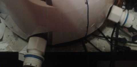Con una broca, cortar los agujeros en la parte posterior del casco e instalado dos 1/2 PVC presión adaptadores. Luego pegado en su lugar con la pistola de pegamento caliente.