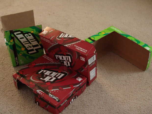 Empezar, marca donde vas a cortar las cajas con un rotulador. Trace el contorno de una caja en el lado de la otra un poco más de una pulgada de la parte superior y frontal, entonces hacer el otro lado, se trata de la placa frontal. Para la otra caja, dibujar una línea alrededor del lado estrecho que divide a la mitad, esta casilla hará que los lados del casco. Después de su hecho jugando con los marcadores, siga adelante y la caja de corte. ADVERTENCIA: Uso incorrecto de un cuchillo puede resultar en la pérdida de extremidades, por favor tenga cuidado.