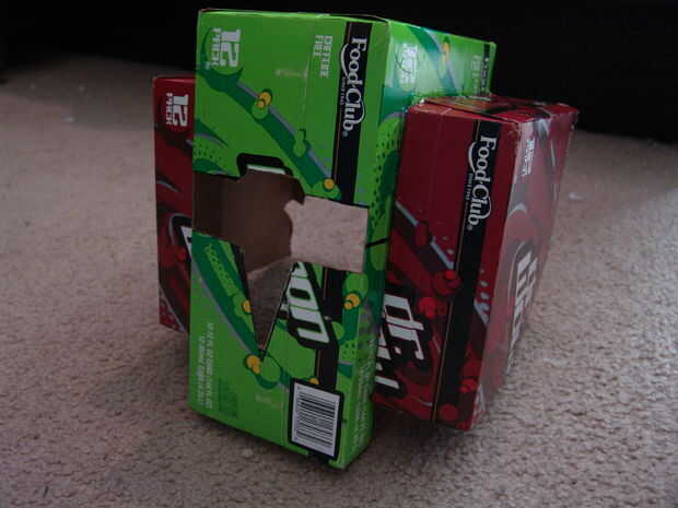 Pegue los lados del casco a la placa frontal. La mejor manera de hacer esto es poner el pegamento en la placa frontal y luego establece uno de los lados en la parte superior. Puede que necesite agregar el pegamento más dependiendo de qué tipo de cartón utiliza, pero mina fue muy robusta después de sólo una aplicación.
