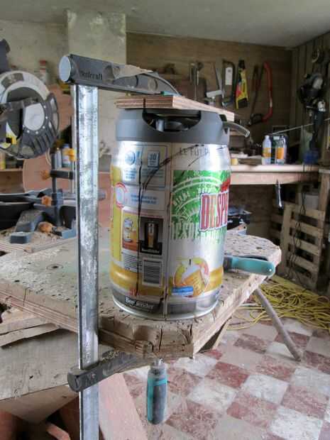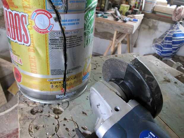 Utilice un cortador de ángulo para cortar el barril en dos piezas lo que hice y no tirar.