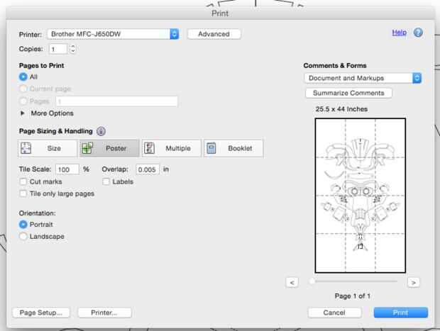 Una vez que se descarga la plantilla necesita imprimirlo. El tamaño del archivo es más grande que una página estándar de la impresora, usando el poster en tu impresora va a resolver este problema.