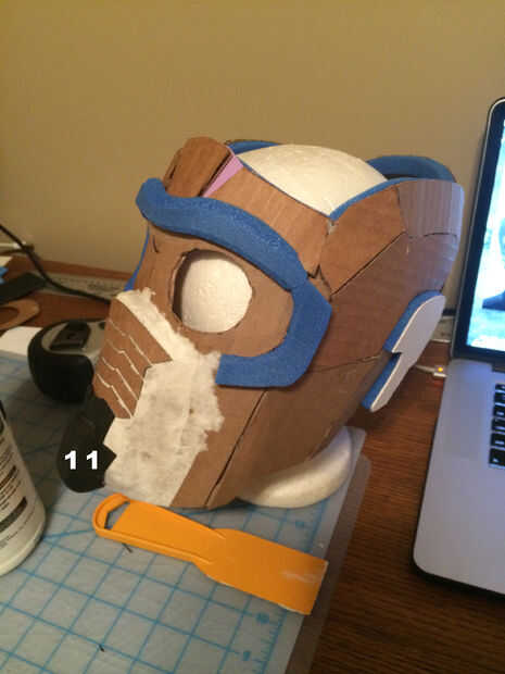 Antes de colocar las rejillas de ventilación el pedazo de boca tiene que ser solidificada. Utilizando el papel toalla y pared pasta de papel, de papel maché la porción delantera de la máscara. Una vez seca la maché Coloque las piezas de ventilación con pegamento caliente.