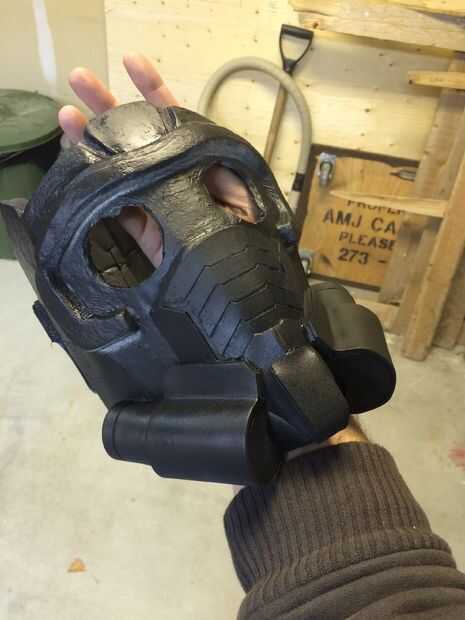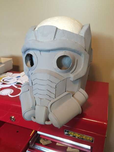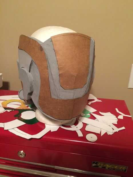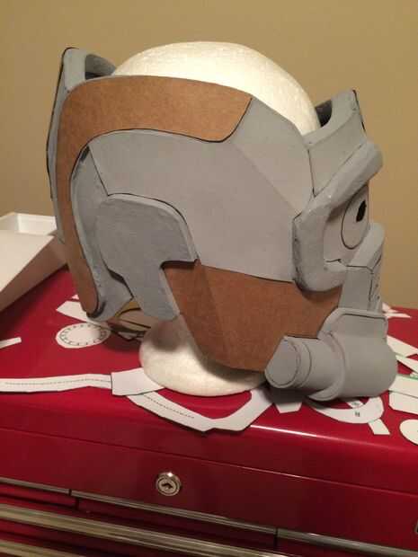 Una vez que se unen los paneles pueden colocarse los ojos del casco. Están hechas de un cartón delgado y se unen con pegamento caliente.