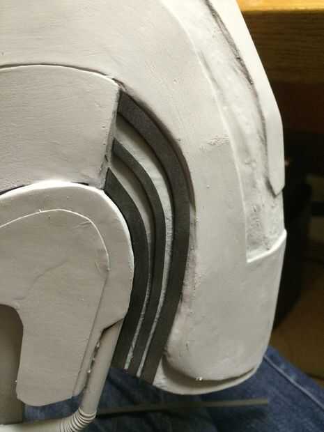 Eva Foam cartón y trozos de tarjeta más ligero de peso crean los detalles del casco. Estos detalles darán el casco más impacto visual.