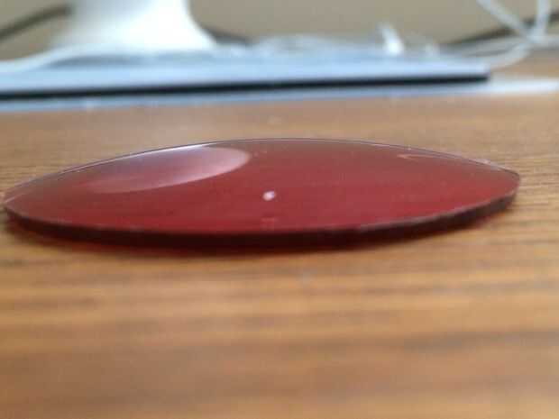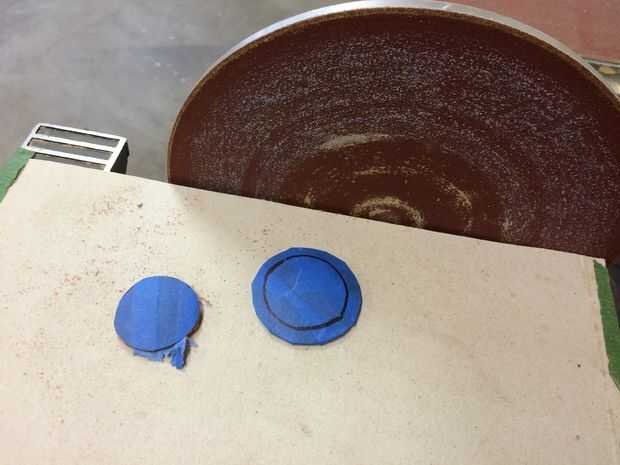 Usando una lijadora de disco lentamente forma de la lente. Probar el ajuste de las lentes hasta que estés satisfecho con su apariencia. Retire la cinta y pegar las lentes con E6000, asegurándose de mantener el pegamento de la parte visible de la lente.