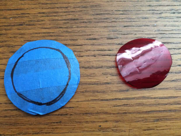 Tomar las lentes de los marcos de gafas de sol y coloque la lente sobre una tabla asegurándose de que la curva de la cóncava es vertical. Cubrir la parte delantera y trasera de las lentes con cinta de pintor para proteger la lente. Utilice la lente de gel viejo como plantilla y trace la forma en la cinta.
