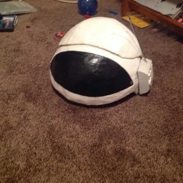Ahora utiliza la pintura blanca de spray por todo el casco (igual que el papel maché que se tendrá que hacer al menos 3 capas.