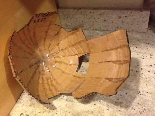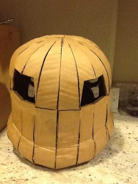 De nuevo, pegue las puntas de la parte posterior del casco. Mira de cerca en la tercera foto aquí para tener una idea de cómo doblar la parte inferior redondeada del casco. Puede ser difícil hacer esto bien, pero una vez empiezas a pegar y doblar, verás que la forma de la parte informa los pliegues y juntos viene bastante claramente.