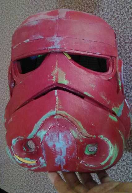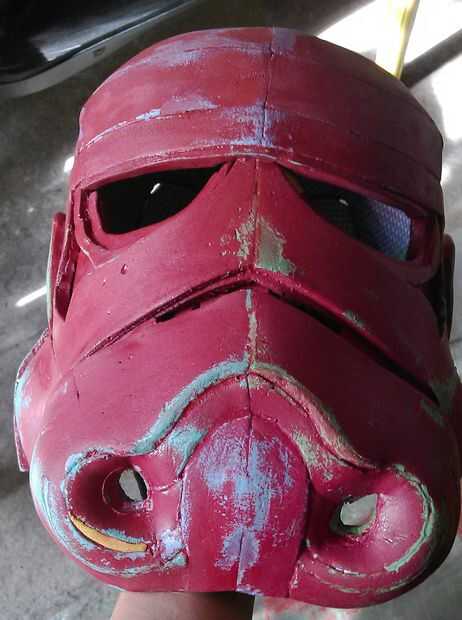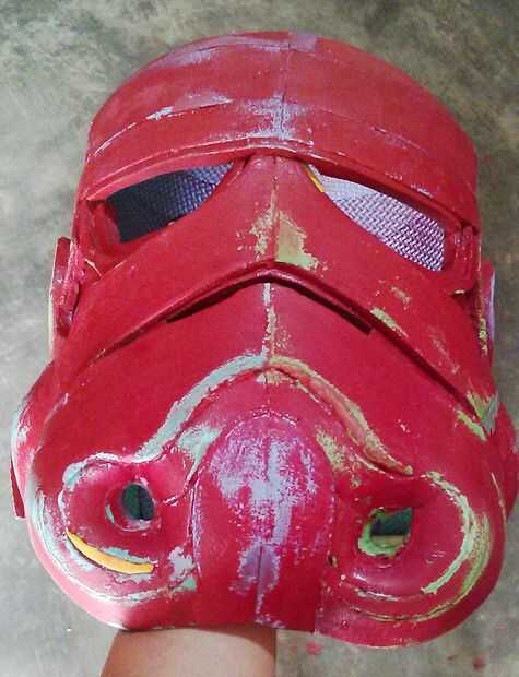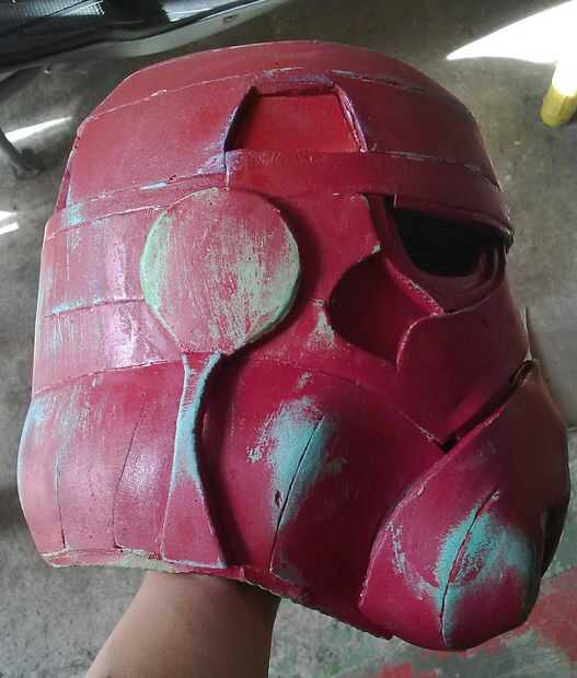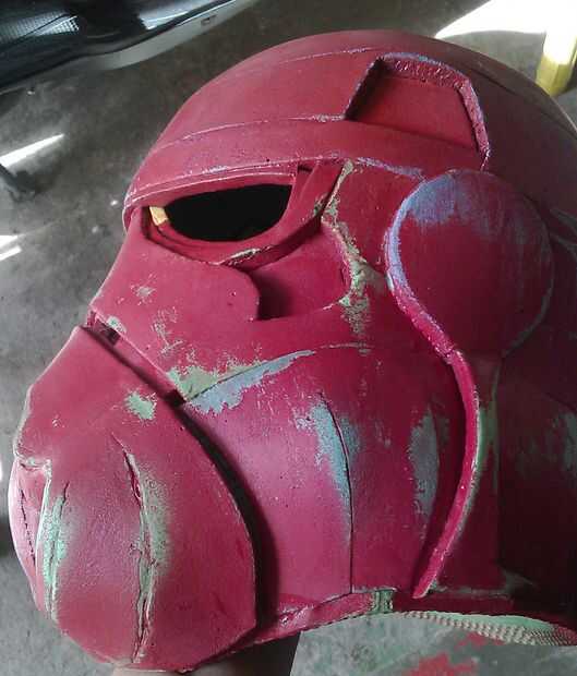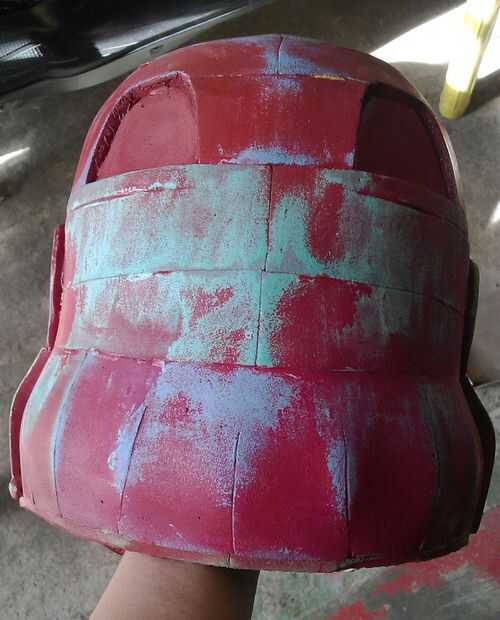 He pintado el casco rojo puesto que es todo lo que tengo disponible. lo hice para ver las costuras. Lijar el casco más o menos justo para suavizar las costuras.