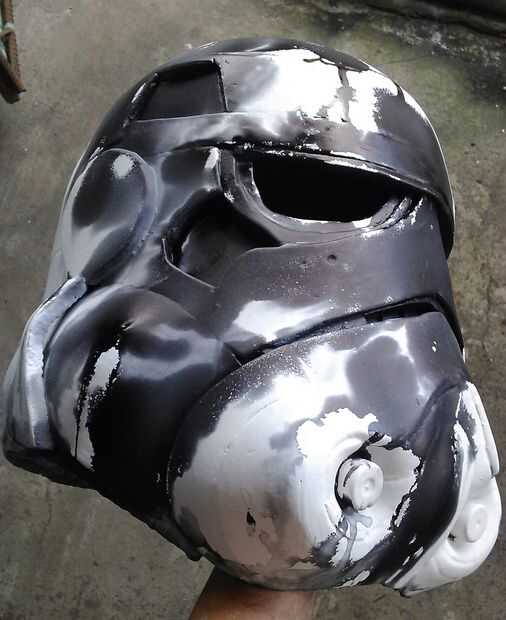 Originalmente, voy a dejarlo liso blanco. pero entonces un poco aburrido. así que me puse a pintar sobre los detalles de negro en ella. Yo estaba en mi forma de hacerlo cuando golpeó accidentalmente sobre la botella de tinta negra. Vi cómo la tinta fluyó en el casco y le gustaba el efecto. así que derramé tinta unas cuantas más para completar el look.