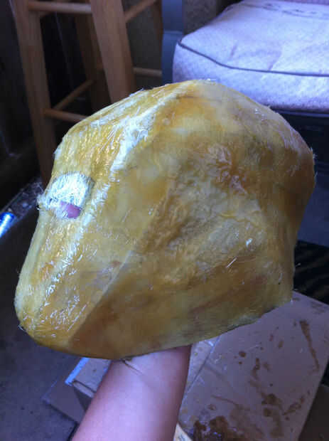Una pequeña nota, así, desde el casco de cartón era un perfecto ajuste a la cabeza y era semi flexible, tuve que colocar un espaciador para mantener el casco abriendo un poco más para que cuando el casco era sólido mi cabeza simplemente encajaría en.
