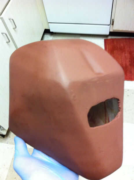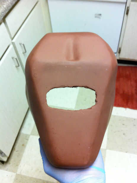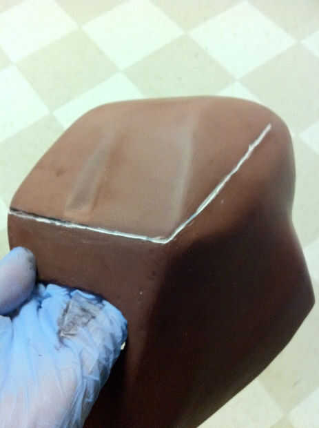 Después de dos capas de imprimación fui y trazó una línea por donde quería el alambre para ir más adelante y utilizado una cuchilla de afeitar para cortar un surco en forma de v en el casco. Luego usé un destornillador, girando cuando fui a lo largo de la línea a en taladro de efecto un semicírculo de la ranura en forma de v. Luego rocía una última capa de imprimación.