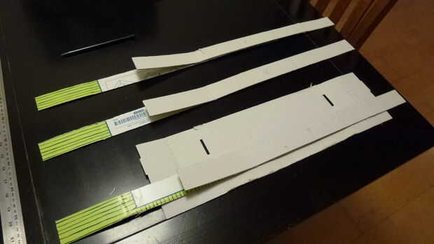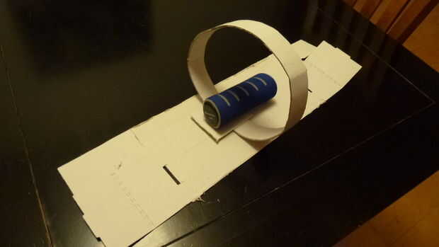 He medido la circunferencia de la cabeza requiere de 53 cm. Cuando construí el primer fotograma, era demasiado pequeño. El casco va a ser muy circular, pero un jefe no es generalmente. En mi tercer intento utilicé tiras de 60 cm para el anillo, que resultó para ser un poco demasiado, pero se adapta bien con algún cojín dentro del casco.