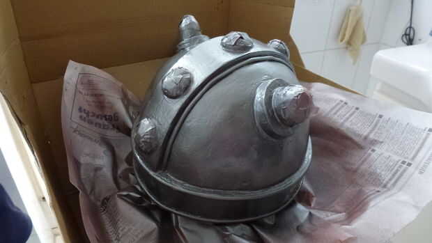 He elegido un color base rojo/marrón para el casco. Esto bien puede conseguir visible en partes no pintadas posteriormente como llantas y manchas de herrumbrosas. La segunda capa es un color gris metálico para que se vea como el hierro. El color final es un metálico azul, que hace un muy buen final para el estilo de Wickie - cómico pero no demasiado plana.