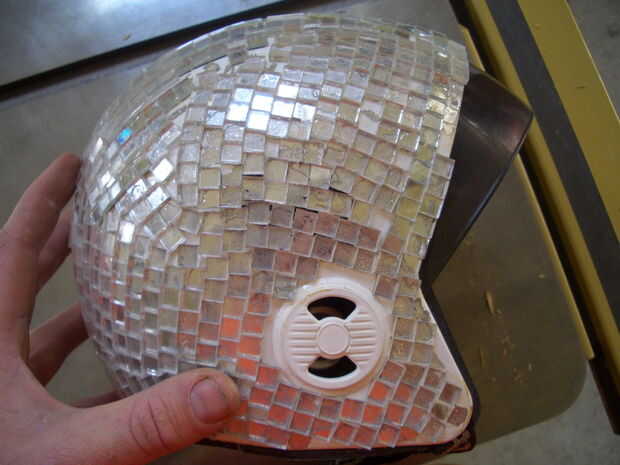 ¿por qué hacer un casco de bola de discoteca?  Porque es impresionante.  suficiente, dijo.He visto cascos de bola de discoteca antes, pero no satisfacen al perfeccionista en mí.  No caprichosamente pegados trozos de espejo plástico aquí, este es el v