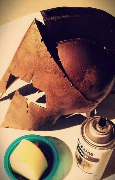 Comenzó con la pintura marrón, pintura de aerosol el casco del agujero y el uso una esponja para el color oro y grifo grifo todo el casco y que se debe.