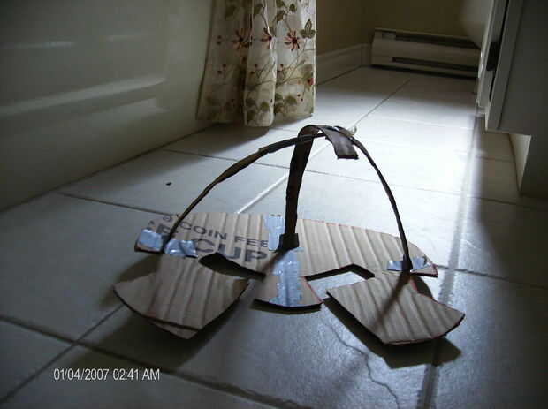 Luego poner la máscara a la cara y usa un lápiz para marcar en la parte superior de mi cabeza reunió la máscara y a cada lado. Tomé tiras finas de cartulina y utilizado como una guía para construir la parte de "sombrero" del casco. No molestaba adjuntarlos demasiado bien porque quité una vez había empezado a grabar en las piezas del sólido.