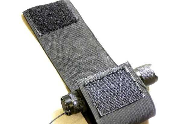 Ahora el pedazo de Velcro a la tira de elástico en la parte inferior de la tira de elástico puede ser visto (mencionado en "1").
