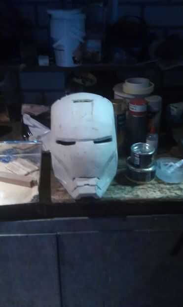 después de obtener el casco de ironman por mi traje y tener mi amigo hacen un molde de látex. decidí probar a hacer un casco de la máquina de guerra. me hizo la preparación y lo pintado luego se dio cuenta que no tenía ningún spray negro en mi arsena